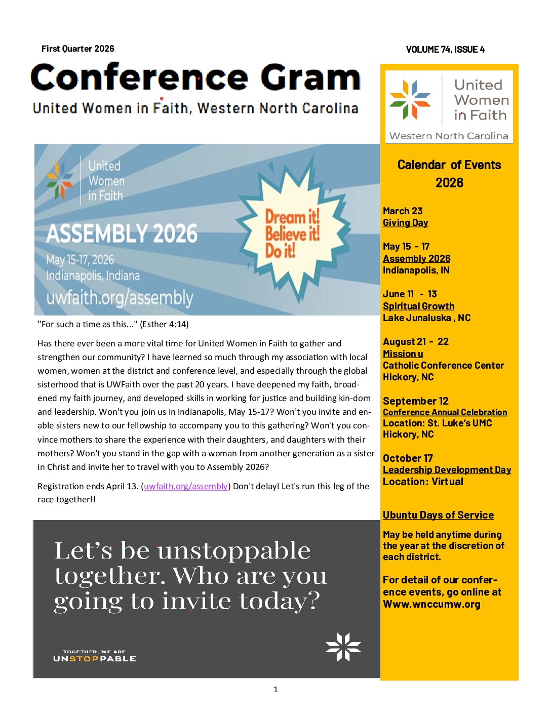 Be an informed Western North Carolina Conference United Women in Faith member….